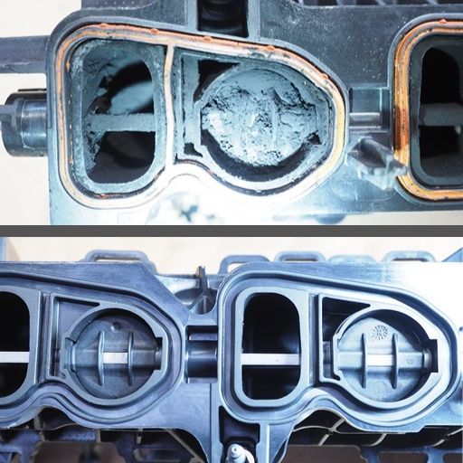 Diese Rückstände lagern sich mit der Zeit an den Einlassventilen und in der Ansaugbrücke ab, wo sie durch Hitze verbacken und verhärten.